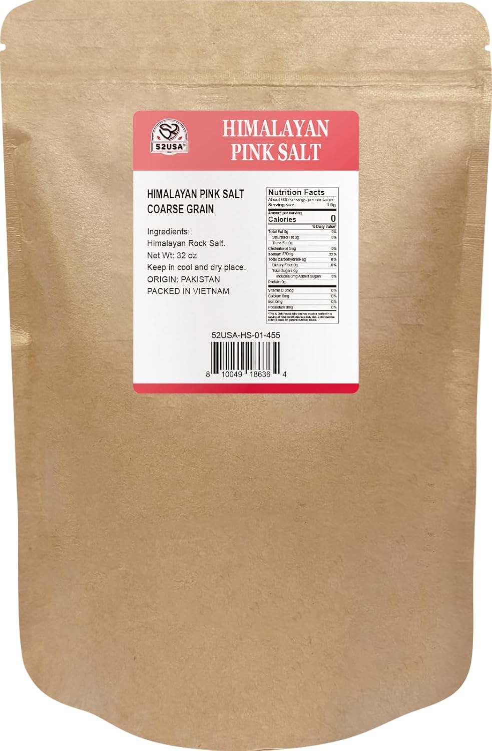 52USA Himalayan Pink Salt is 100% natural, additive-free, and rich in essential minerals. Perfect for seasoning, cooking, baking, and bath soaks. Comes in a resealable 2 lb pouch to lock in freshness and flavor.