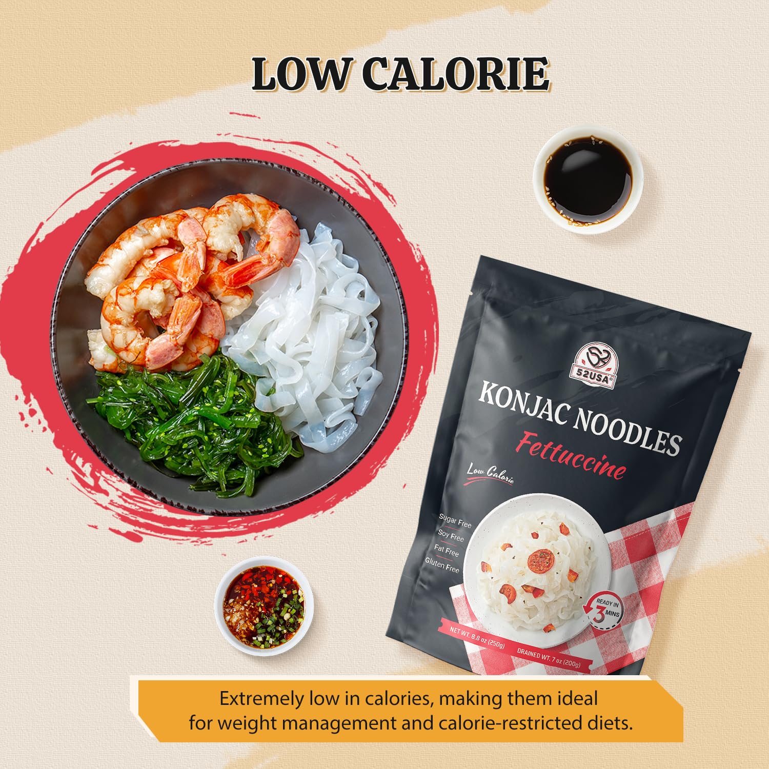 Enjoy guilt-free pasta with 52USA Konjac Shirataki Noodles! Low-carb, sugar-free, keto and vegan friendly. Includes 3 varieties: Angel Hair, Fettuccine, Spaghetti. Quick, easy, and ready to eat.