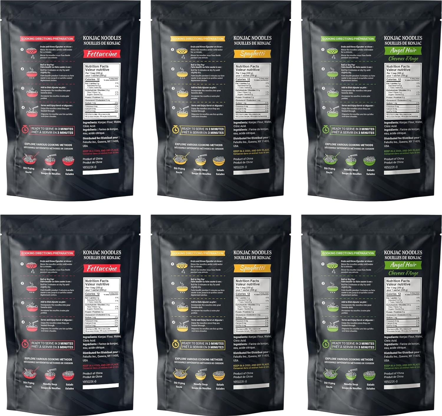 - 6-pack variety: Angel Hair, Fettuccine, Spaghetti