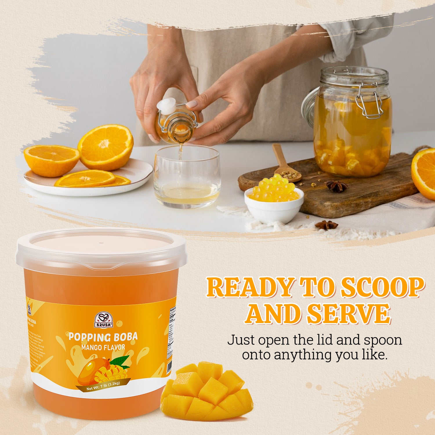 - Bursting Mango Flavor: Our Each boba popping is filled with fresh and sweet Mango juice, every time you chew, you can feel the aroma of strawberries filling your mouth.