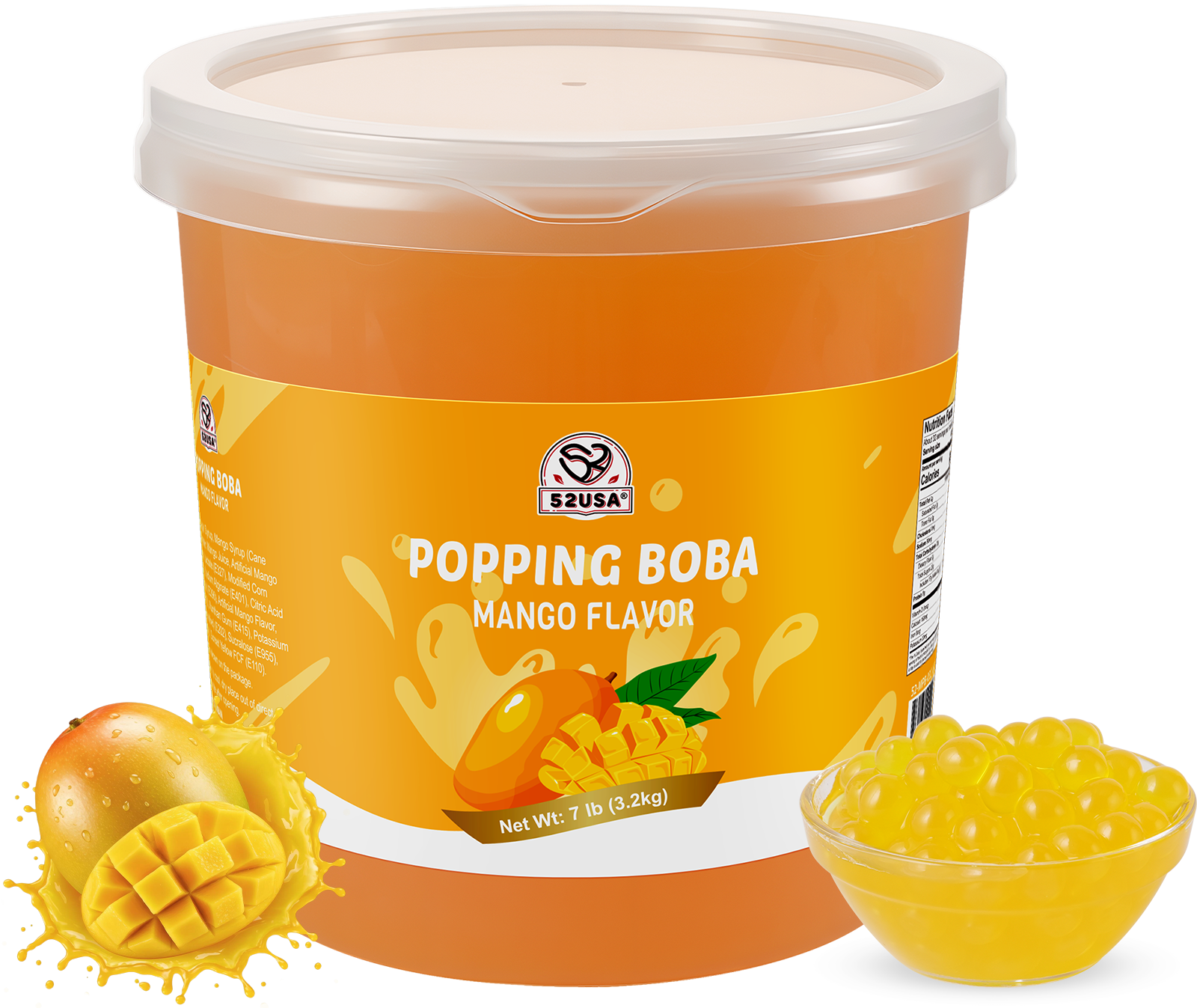 52USA Mango Popping Boba Peals 7.05 Pound, Bursting Boba Pearls for Bubble Tea, Beverages, Ice Cream, Shakes, Yogurt, Desserts, Smoothies & Drinks Toppings
