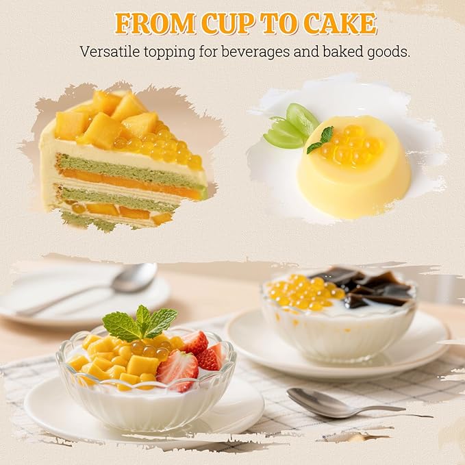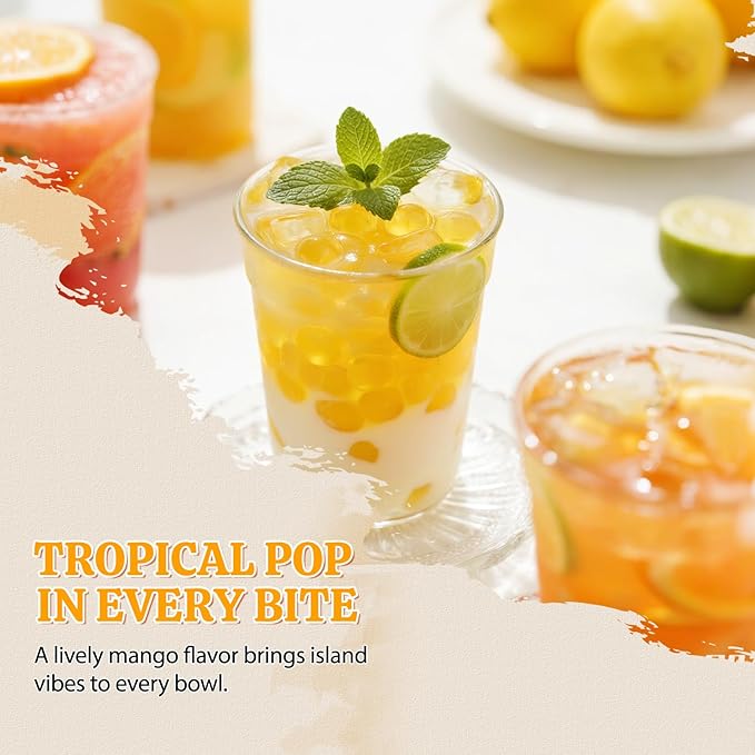 • Bursting Mango Flavor: Our Each boba popping is filled with fresh and sweet Mango juice, every time you chew, you can feel the aroma of mango filling your mouth.