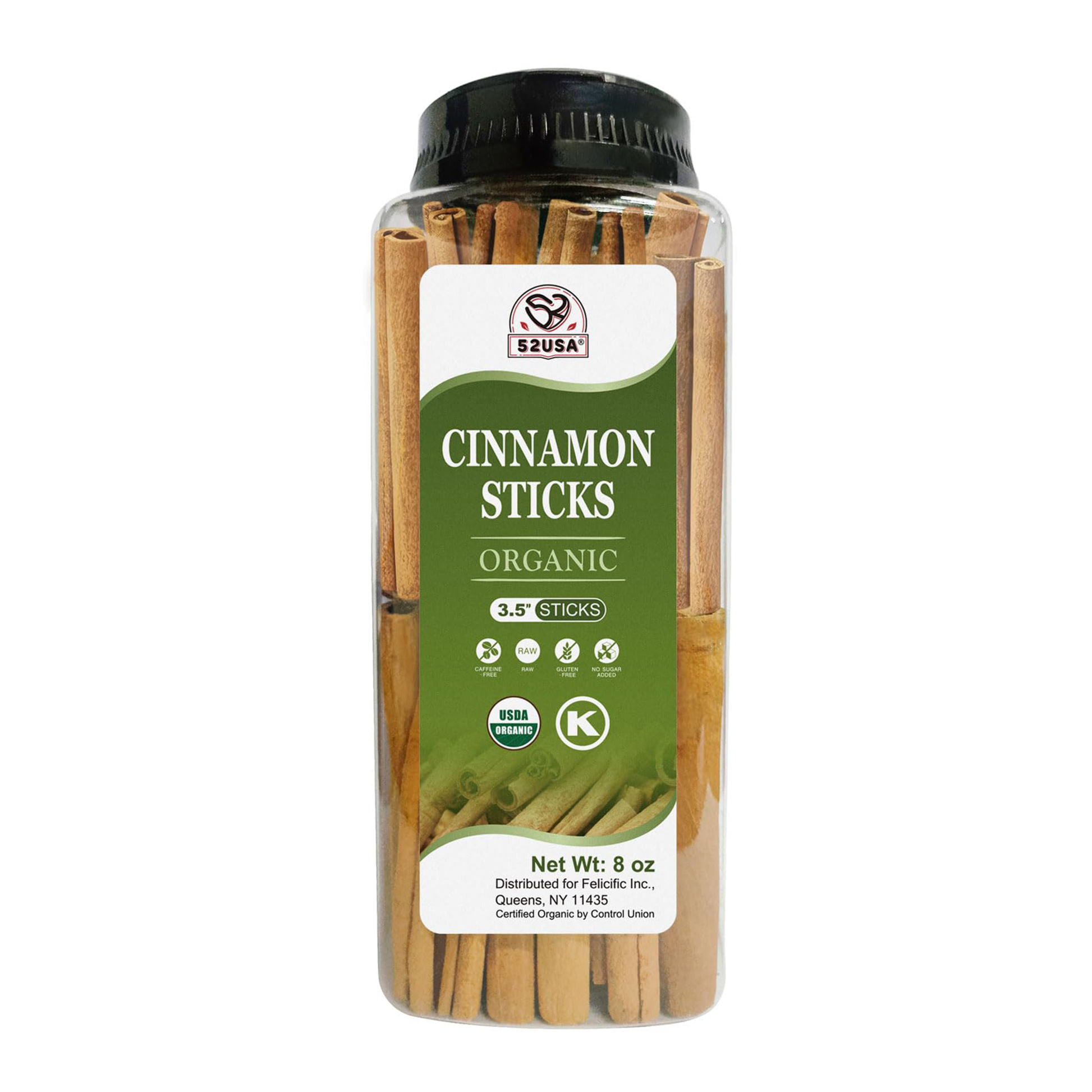 52USA Organic Cinnamon Sticks 8oz (226g) – Whole Cinnamon Sticks, 100% Raw, USDA Organic & Kosher Certified, Non-GMO, Gluten Free, Pure & Fresh Spice for Baking, Cooking & Beverages