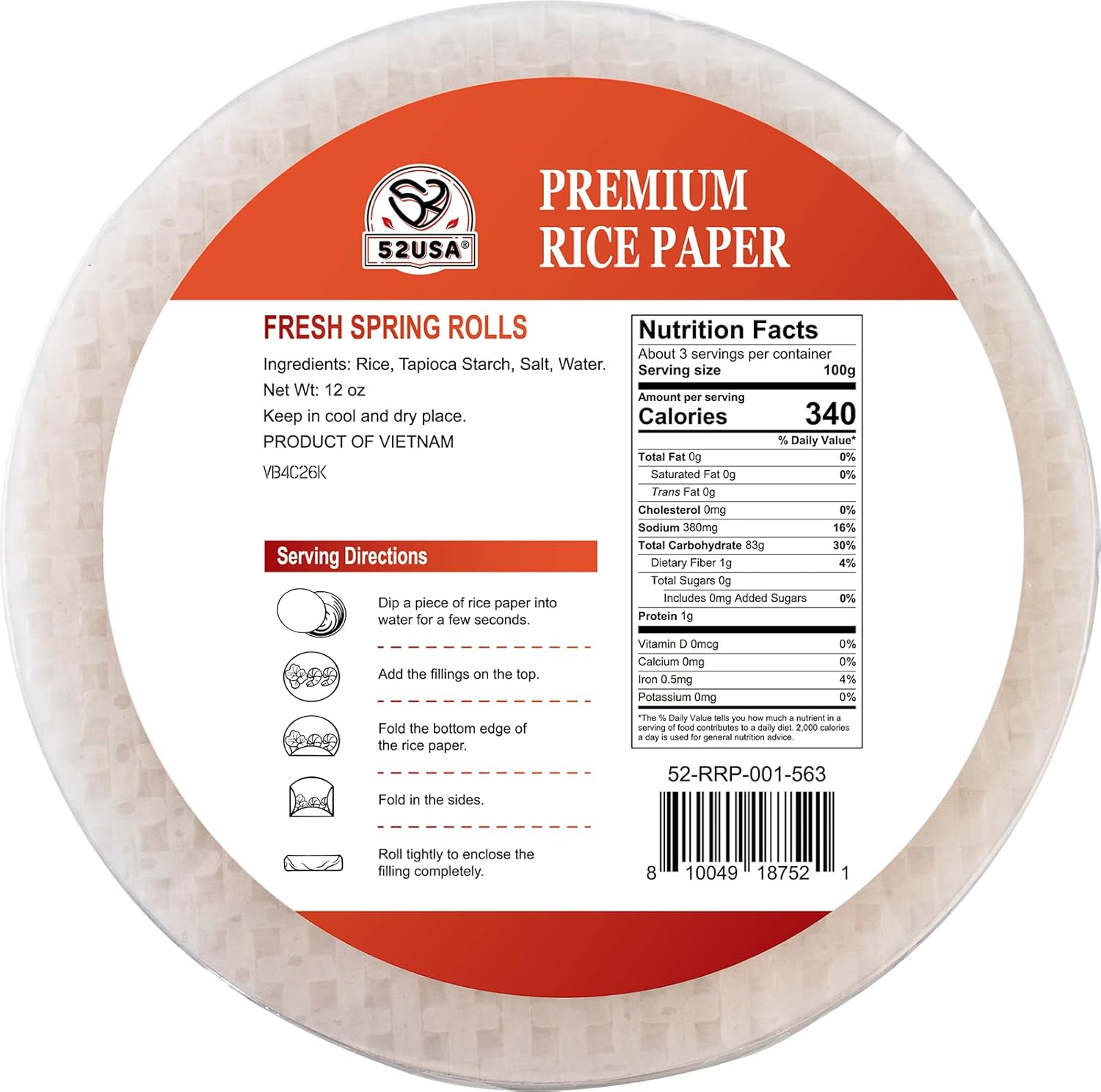 52USA Round Rice Paper 340g (1 Pack)