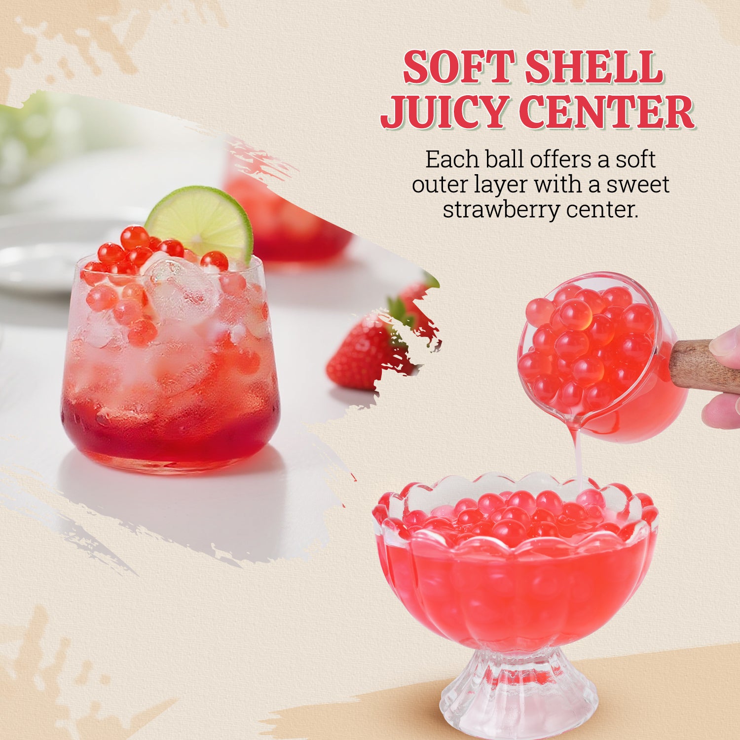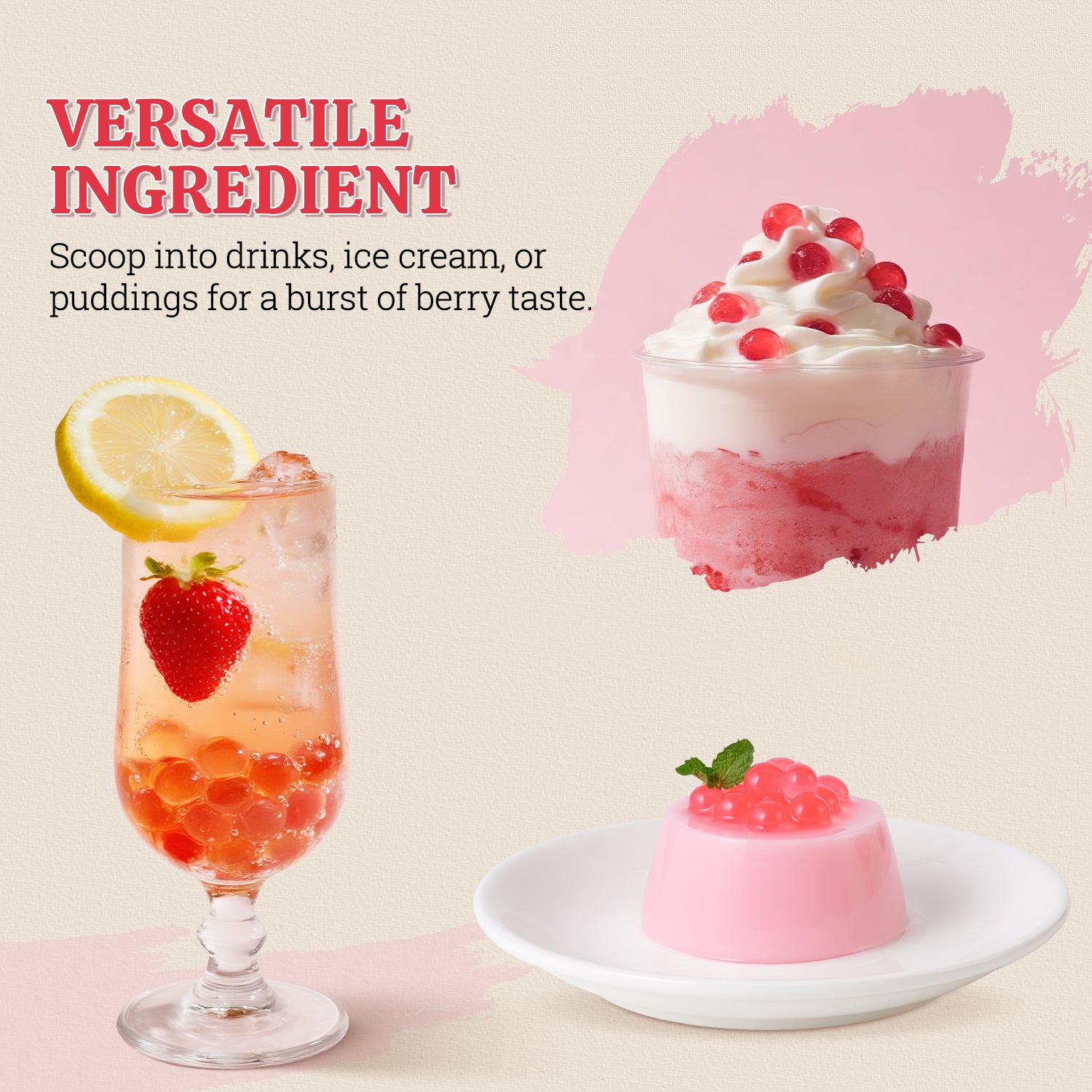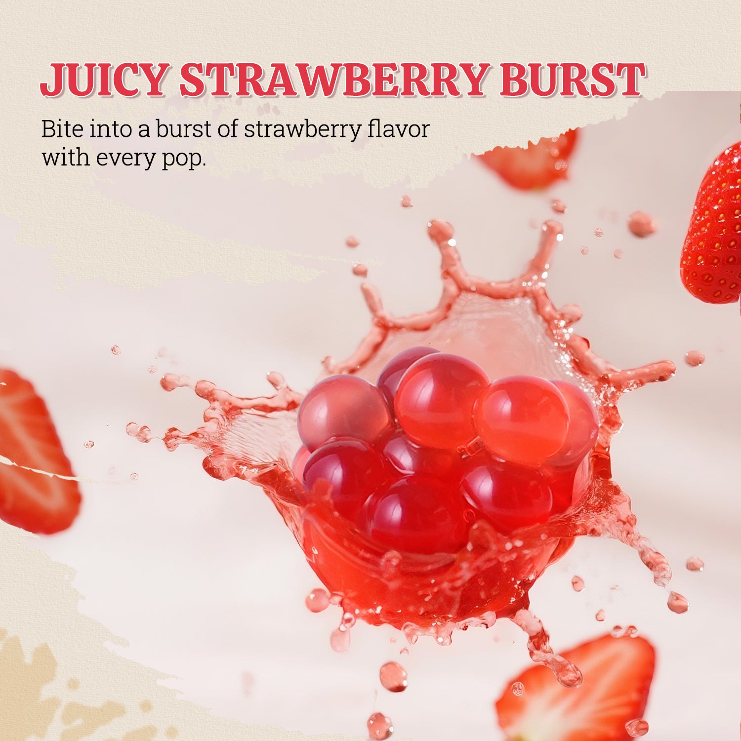 - Bursting Strawberry Flavor: Our Each boba popping is filled with fresh and sweet strawberry juice, every time you chew, you can feel the aroma of strawberries filling your mouth.