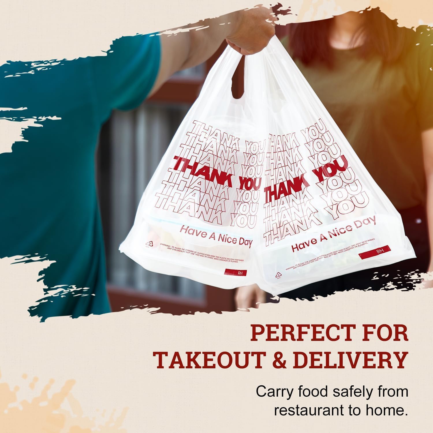 - Multiple Uses: With a standard design (11.5" x 6.5" x 21"), these white plastic Thank You bags add a clean, professional look it is suitable for food or other goods and can be used in various scenarios, such as grocery stores, shops, takeout, trash cans, convenience stores, bakeries, and coffee shops, etc.