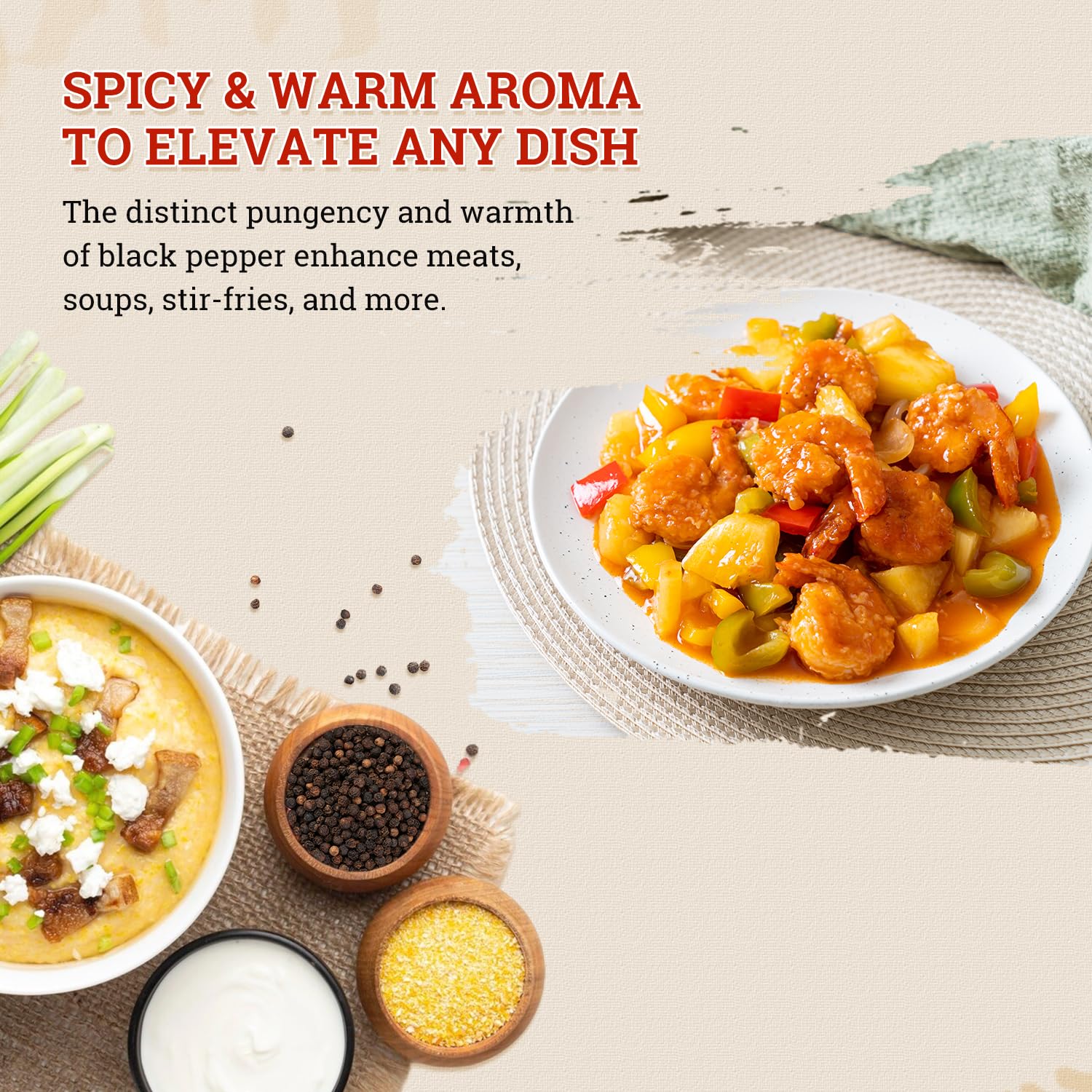 Bring rich, aromatic flavor to your kitchen with 52USA Whole Black Peppercorns, 18oz (Pack of 1). Known as the King of Spices, these all-natural peppercorns are steam-sterilized and free from additives.