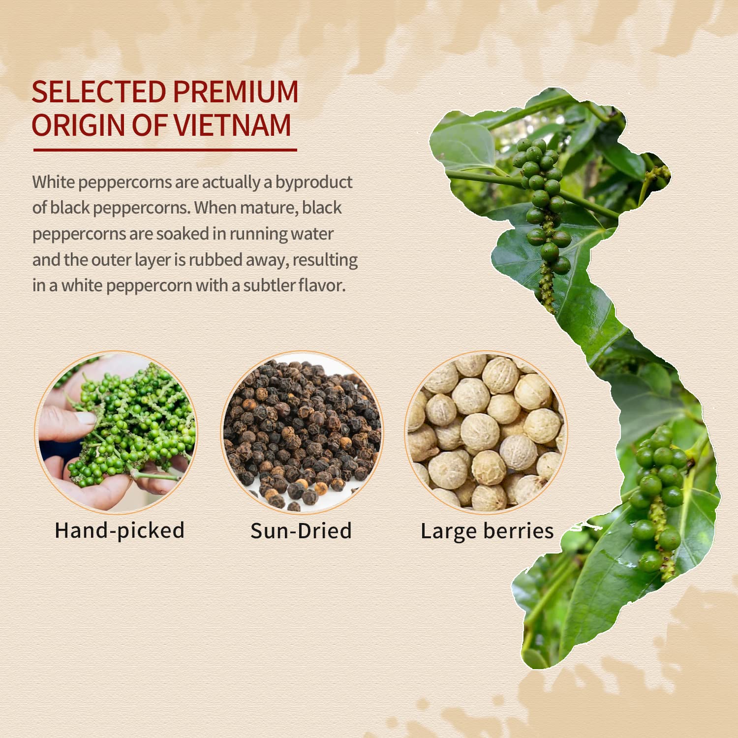 52USA white pepper 18oz, Whole White Peppercorn, Peppercorn Blend of Grinder, White Pepper for Grinder, White Peppercorns Bulk