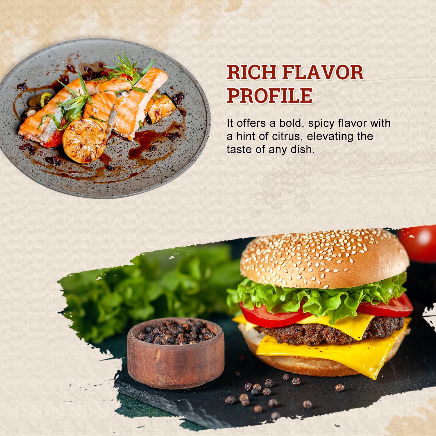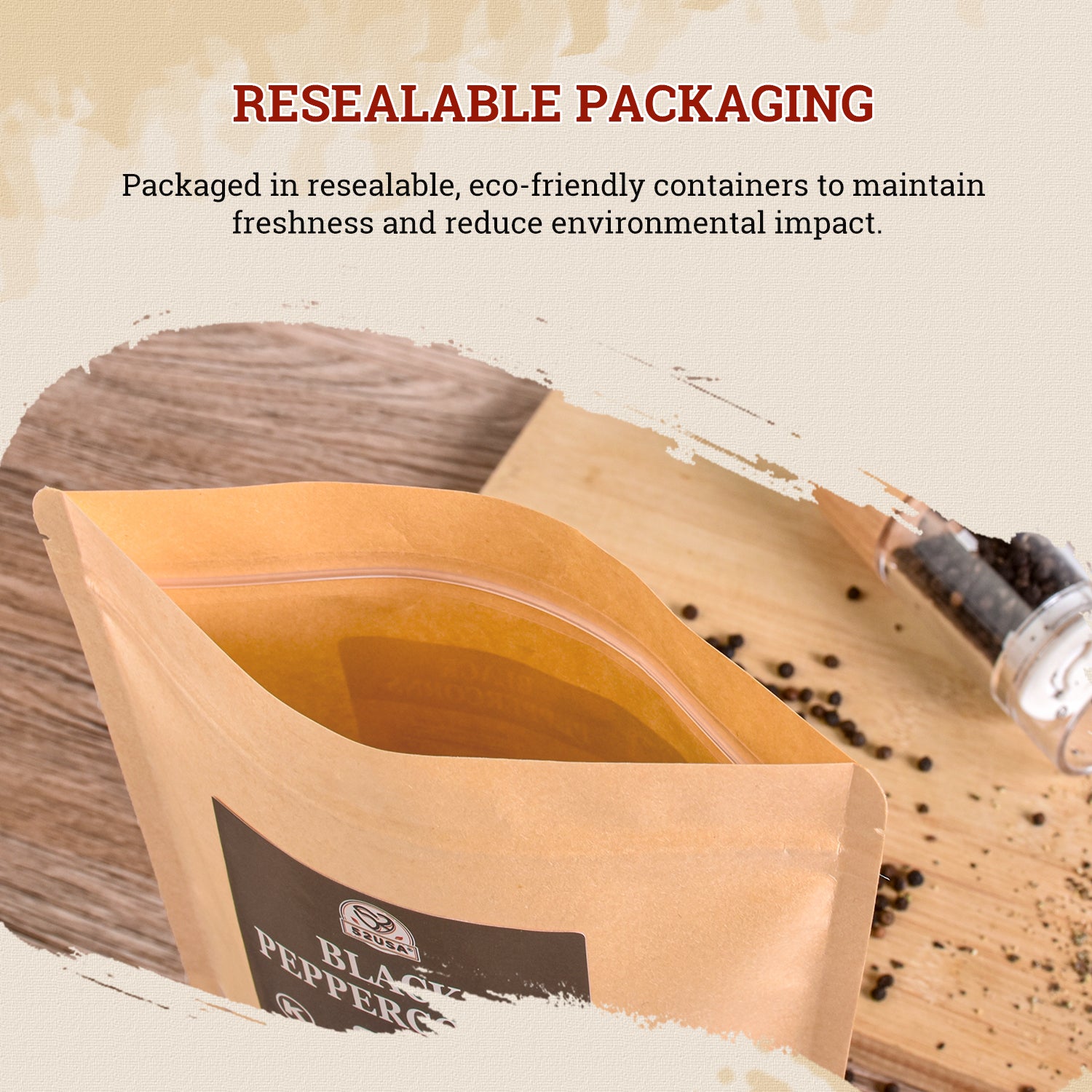 52USA's black peppercorns is a culinary essential, deliver a superior earthy flavor with citrusy and floral notes in a convenient, resealable pouch, perfect for enhancing your favorite dishes with a pungent kick and a multitude of health benefits.